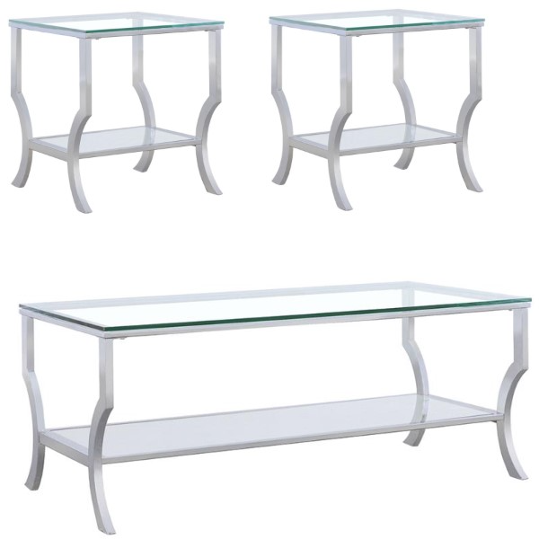 The Saide 3-piece Glass Top Coffee and End Table Set in Chrome features a sleek chrome frame with clear glass tops. This set offers both elegance and durability, providing a stylish and functional addition to any living space for your decor and everyday needs.Read More