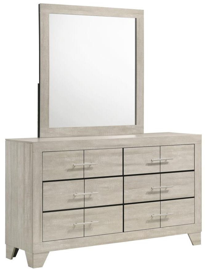 The Coaster® Trenton Cream Dresser and Mirror set features a soft cream finish with elegant detailing. The spacious dresser provides ample storage, while the matching mirror adds a touch of sophistication, creating a stylish and functional addition to any bedroom.Read More