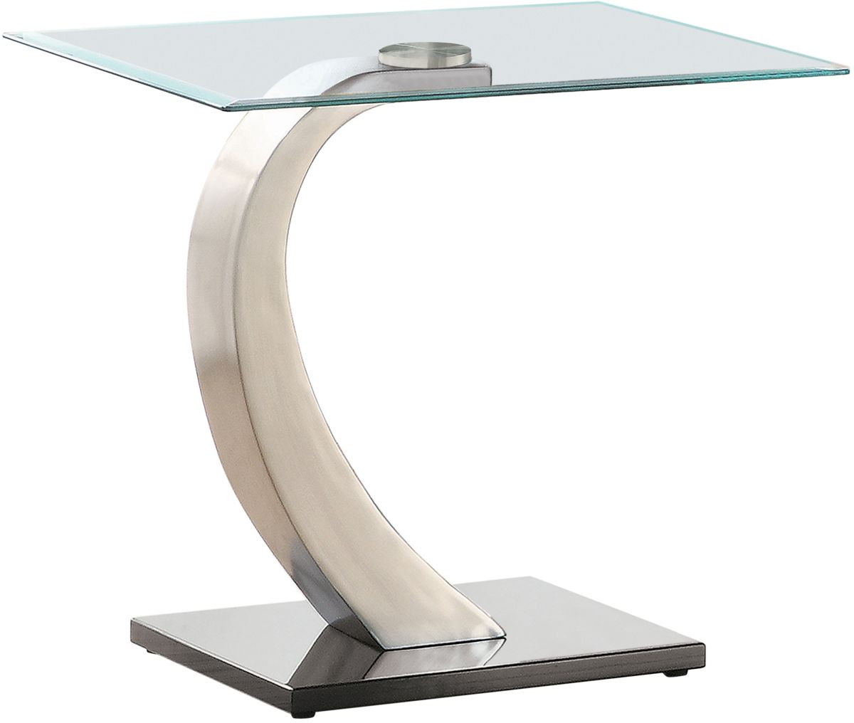 Reminiscent of a modern art museum, this end table boasts a stunning design. Its elegant, floating glass top is bolstered by a sturdy metal support with an eye-catching, curved silhouette.Read More