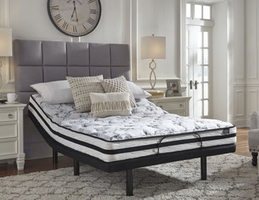 Why worry when you can chime? With the Sierra Sleep® Chime innerspring mattress, you have endless possibilities for restful sleep. Feel the support of a truly traditional coil mattress which contours to your body for a traditional feel. High density quilt foam and pad provide the firm feel you love. Take sleep to a whole new level with this Ashley-Sleep® Lifestyle queen power base with adjustable head. Smoothly raise your upper body to relieve pressure points. The benefits include: comfort for those who want to sit up in bed and better breathing, essential for those who snore or experience acid reflux. Convenient USB charging is available in the remote for connecting your electronics.Read More